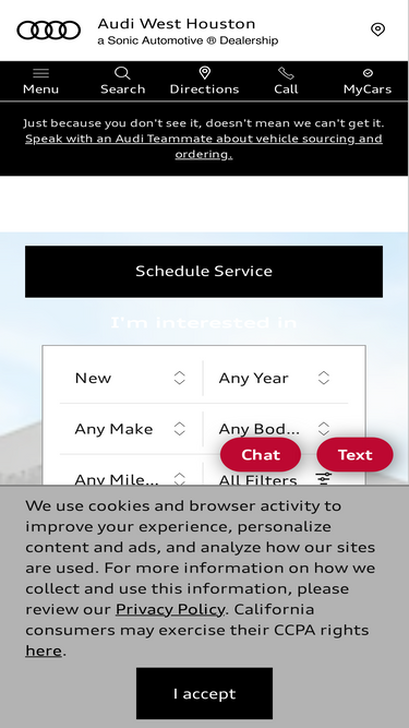 90%discover the next evolution of audi excellence at audi west houston in the heart of the energy corridor. we raise the bar with our innovative audi sales and service process.