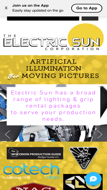 95%The Electric Sun Corporation is a Lighting & Grip rental company located in Glendale (suburb of Milwaukee), WI. We have a broad range of lighting and grip rental packages to serve your production needs. Including LED, HMI, Fluorescent and classic Tungsten along with the Camera Dollies, Dana Dolly, Cineped Sliders, Generators, Grip Trucks and Vans. You can rent anything from one C Stand to a full 5-Ton Package. Customization and Client Service are what we are about.