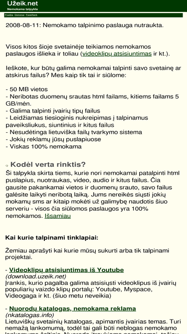 54%100% nemokama talpykla puslapiams, nuotraukoms, siuntiniams: 50 mb vietos, neribotas duomenų srautas.