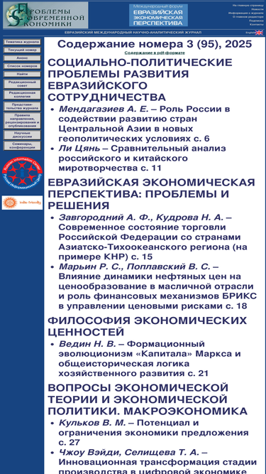 93%евразийский межрегиональный научно-аналитический журнал проблемы современной экономики