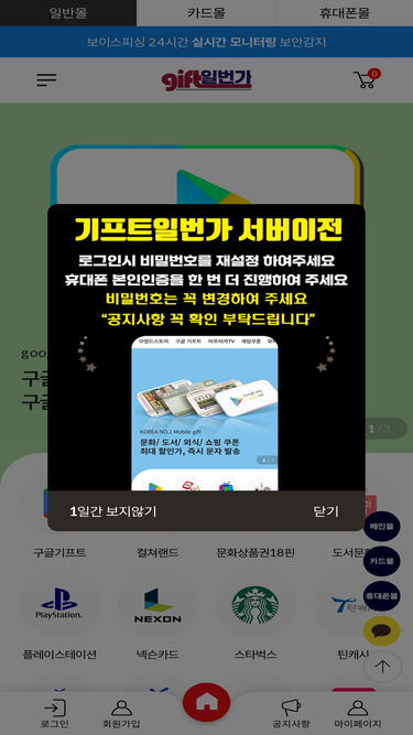 82%기프트일번가 24시 실시간 발송 / 상품권 전문 쇼핑몰 기프트1번가 / 구글 기프트카드 온라인 할인 구매