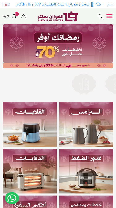 91%استمتع بأقوى العروض وأقل الأسعار مع الفوزان سنتر أكبر صالة عرض في المملكة العربية السعودية والتي تضم اوسع تشكيلة من الأجهزة الكهربائية والأواني المنزلية والأثاث استمتع بالتسوق أونلاين والشحن الآمن السريع