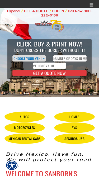 76%Sanborns provides reliable Mexico auto insurance. Get a free quote today and drive with confidence south of the border!