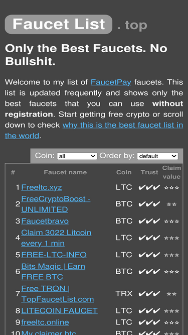78%The best list of Tether faucets. Only instant faucets that don't require registration. Updated frequently with the newest and highest paying ones.