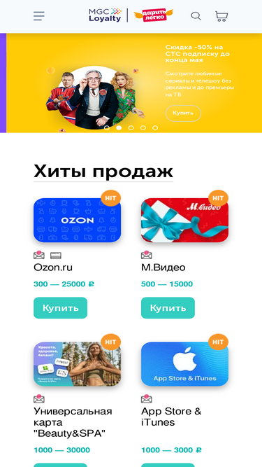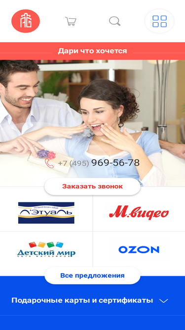 100%У нас можно создать подарочный электронный сертификат онлайн, или оформить подарочную карту из большого числа эмитентов на любое событие. С нами дарить легко!