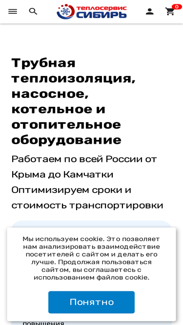 100%Наша организация успешно реализует себя на рынке трубной теплоизоляции, насосного, котельного и отопительного оборудования, работая по всей России, от Крыма и до Камчатки