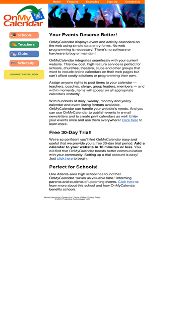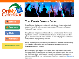84%create and publish event calendars on the web. no web programming, no software to maintain. perfect for schools, high schools, churches, groups and clubs adding online calendars to their web pages. free trial. onmycalendar.com