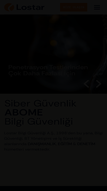 94%Penetrasyon Testlerinden Çok Daha Fazlası İçinAYRINTILI BİLGİABOME ile Sürekli GüvenlikAYRINTILI BİLGİBilgi Güvenliği Sektörünün Öncü Şirketi Lostar 25 Yaşında!HAKKIMIZDA Previous slide Next slide Lostar Bilgi Güvenliği A.Ş., 1998’den bu yana, Bilgi …