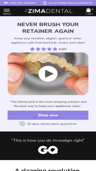 Zima Dental engineered the Dental pod the world's first ultrasonic oral appliance cleaner. Cleans: Aligners, Retainers, Invisalign and other oral appliances in 5 minutes. Harnessing the latest ultrasonic wave technology the Zima Dental pod cleans to the core, removing all harmful bacteria and plaque.
