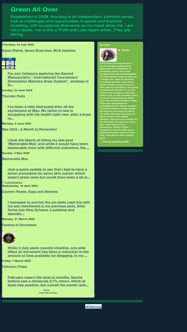 82%Established in 2008, this blog is an independent, common sense, look at challenges and opportunities in sports and financial investing, with occasional diversions as my mood takes me. I am not a tipster, nor is this a Profit and Loss report either. They are boring.
