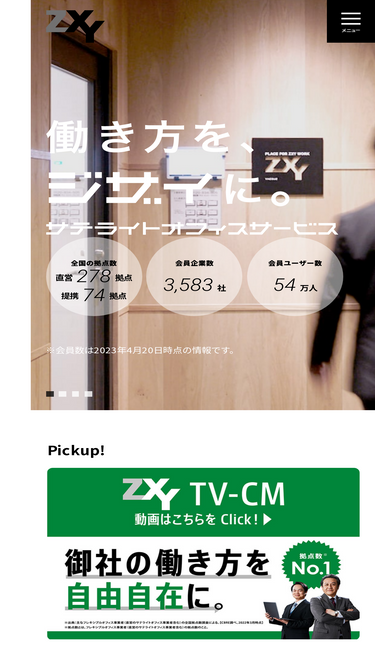 86%ZXY[ジザイ]は初期費用・固定費不要で15分150円~から使える予約可能/個室中心のサテライトオフィスサービスです。全拠点駅徒歩5分以内の1都3県2拠点を利用可能。法人契約専用で6,975社63万人にご契約いただいております。