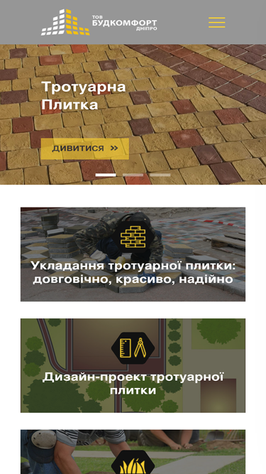 73%Компания Стройкомфорт занимается продажей и укладкой тротуарной плитки, элементов ограждения, рулонных газонов и др. Подробнее на сайте ➥ stroykomfort.dp.ua
