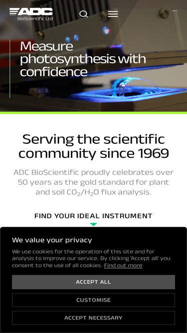 66%Serving the scientific community since 1969 ADC BioScientific proudly celebrates over 50 years as the gold standard for plant and soil CO2/H2O flux analysis. The ADC Advantage News