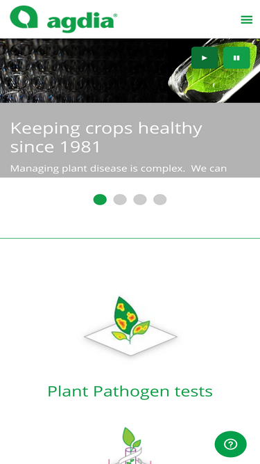 Agdia, Inc. is the leading provider of test kits for plant pathogens and transgenic (GMO) traits. Agdia diagnostics are used all over the world for laboratory and field based detection of plant viruses, bacteria, and fungi that cause plant disease.