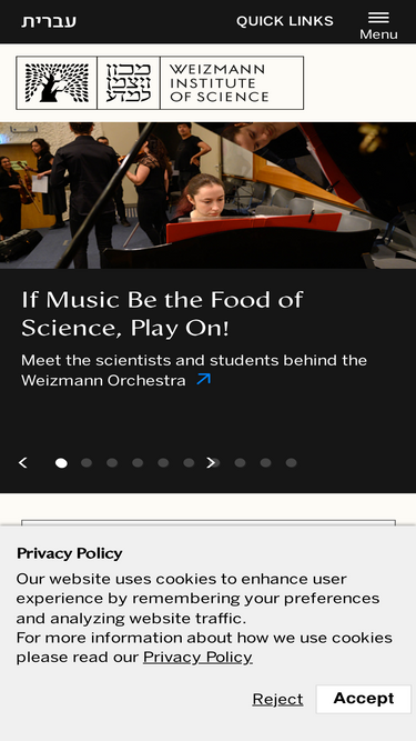 71%The Weizmann Institute of Science is one of the world’s leading multidisciplinary basic research institutions in the natural and exact sciences. It is located in Rehovot, Israel, just south of Tel Aviv. It was initially established as the Daniel Sieff Institute in 1934, by Israel and Rebecca Sieff of London in memory of their son Daniel. In 1949, it was renamed for Dr. Chaim Weizmann, the first President of the State of Israel and Founder of the Institute.