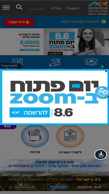 93%אוניברסיטת חיפה מובילה בחדשנות, מצוינות אקדמית ומחקר פורץ דרך חוצה תחומים. מוסד לימודים מתקדם המחובר לשוק העבודה, לקהילה ולסביבה, ומעצב את עתיד החברה בישראל
