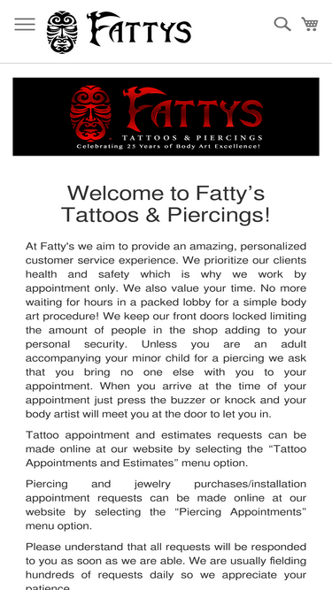 73%welcome to fatty's tattoos and piercings website! we are the best tattoo and piercing shop in washington dc and maryland. meet our tattoo artists, piercers and learn about our quality body jewelry. we have three convenient locations in the dmv.