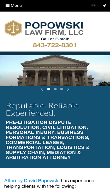 96%The Charleston, South Carolina attorney David Popowski represents clients in general civil litigation, including torts, business litigation, breach of contract, construction, consumer and product liability lawsuits.