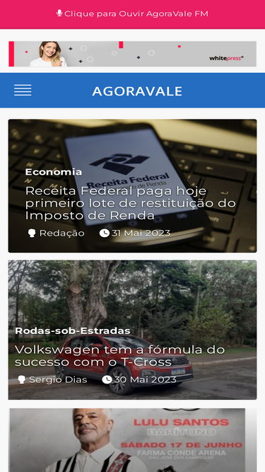 98%O AgoraVale e um site de Noticias e Entretenimento da Região Metropolitana do Vale do Paraíba, Litoral Norte e Serra da Mantiqueira.