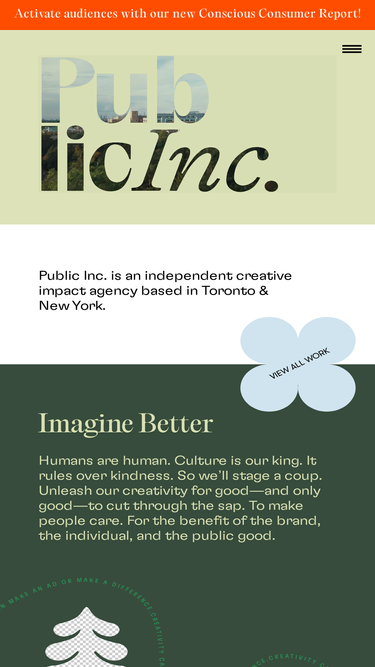 92%welcome to public inc. we're a social impact agency who've been helping companies thrive in a complicated, purpose-driven world since 2008.
