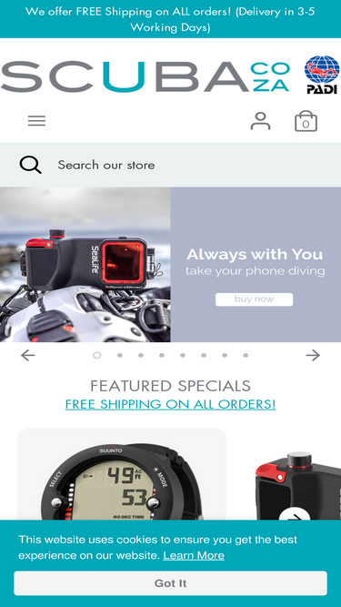 89%Explore the underwater world with www.scuba.co.za, South Africa's premier online dive shop. Learn to scuba dive with our certified PADI courses, or upgrade your dive gear from our extensive selection of top-quality scuba equipment. Your adventure begins here - Scuba Diving redefined!