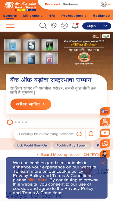 87%bank of baroda, india's international bank offers net banking services & personal banking services like accounts & deposits, cards, loans, insurance & more to meet your banking needs.