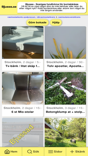 100%prylar bortskänkes gratis! på bjussa.se kan du skänka bort eller fynda soffor, bord, en tv eller något annat helt gratis. bra för miljön och plånboken!