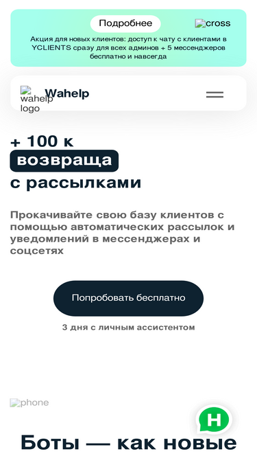 80%пишите клиентам в мессенджер из сделки в amocrm, bitrix24. автоматически повышайте прибыль с ботами в yclients. управляйте диалогами через единое окно