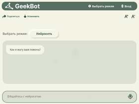 91%AI генератор ответов нейросеть — мощный инструмент на основе искусственного интеллекта для получения мгновенных ответов онлайн. GeekBot обеспечивает быстрые ответы по запросу, экономя ваше время и увеличивая эффективность. Задайте вопрос — получите решение за секунды. Откройте мир инноваций с GeekBot уже сегодня!