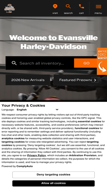 100%Evansville Harley-Davidson is a dealership in Evansville, IN with a large inventory of vehicles for sale. Check out our inventory or contact us for more information!