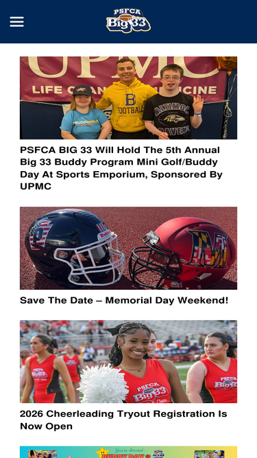 84%The mission of the PSFCA-Big 33 is to support all of our programs, including the: Pennsylvania Scholastic Football Coaches Association, Big 33 Football Classic, PSFCA East/West All-Star Football Games, Big 33 and East/West All-Star Cheerleaders, Host Family Experience and our esteemed Buddy Program. Through these programs, we are proud to foster positive experiences, which provide