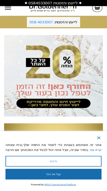 80%ד"ר גולדנהירש מומחה לרפואת עור מארה"ב. תכשירי הקוסמטיקה שלנו מיוצרים בארה"ב בטכנולוגיות מתקדמות והן בחירת רופאי העור בארה"ב. לקבלת עור פנים חלק וזוהר היכנסי עכשיו.