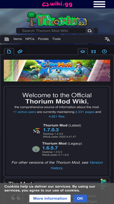 76%The #1 official wiki source of information for the Terraria mod, Thorium.