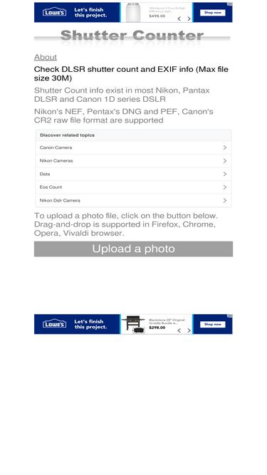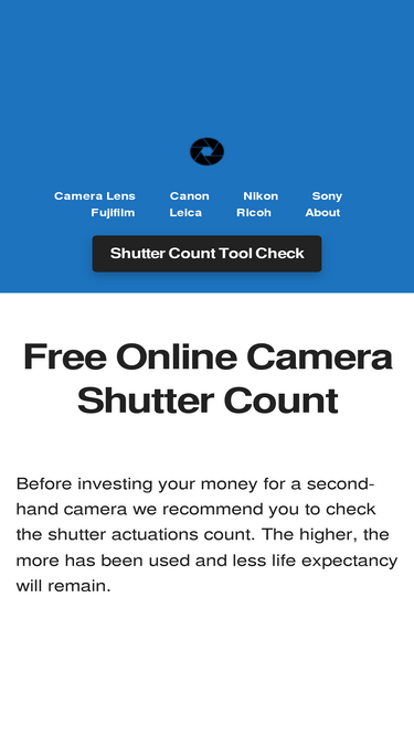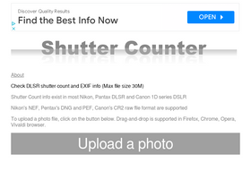 95%Check camera shutter count instantly for Sony, Nikon, Canon, Fujifilm, Pentax, Ricoh & more. Get accurate shutter count results and view detailed EXIF data with our professional EXIF viewer tool - 100% free, no registration required. Discover your camera's true value and health status today!