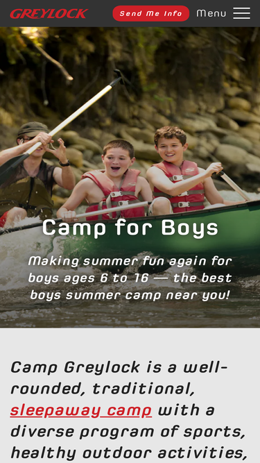 79%greylock is known for our outstanding sports programs, but our outdoor adventure and arts programs are just as much fun! we offer full and short sessions for boys ages 6-16.