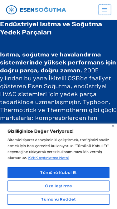Esen Soğutma, HVAC sistemleriniz için yedek parça ihtiyaçlarınızı karşılıyor. Yüksek kaliteli ve uygun fiyatlı çözümler sunuyoruz."