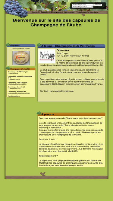 100%ce site répertorie les capsules de champagne des producteurs de l'aube. ce répertoire de capsule de champagne est téléchargeable, ainsi que la liste de toutes les nouveautés.