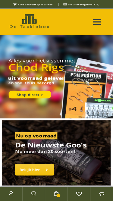 87%De Tacklebox – Sinds 2012 een vertrouwd adres voor alle karpervissers. Bij de Tacklebox kiezen we bewust voor kwaliteitsproducten die we aanbieden tegen scherpe prijzen. Tegelijkertijd doen we ons uiterste best om jou een zo goed mogelijke service te bieden.