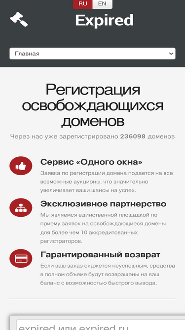 86%регистрация освобождающихся доменов (от 199 руб.) происходит через максимально возможный пул регистраторов, что значительно увеличивает ваши шансы на успех.