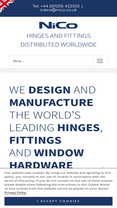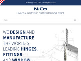 100%EXPORT World Wide Export & Distribution Nico Manufacturing are a worldwide supplier of door hinges, furniture fittings, and hardware for windows which open outwards. We have been established since 1872 and design and make our products in our own factory in the UK. We have a recognised quality brand and make