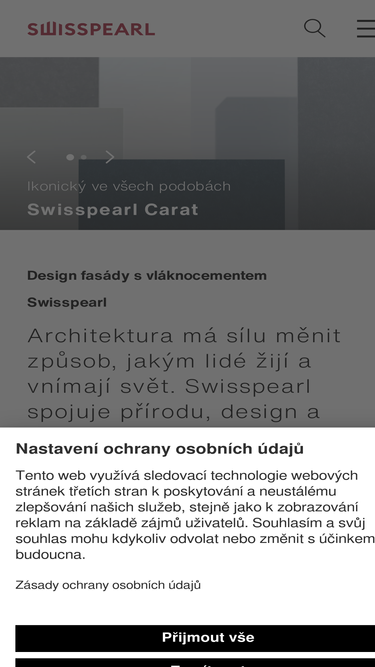 100%Společnost Swisspearl se sídlem ve Švýcarsku je výrobcem vláknocementových výrobků pro fasády, střešních krytin, obkladů vnitřních stěn a zahradních prvků.