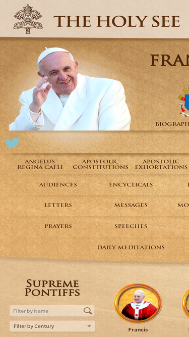 67%Visiting the official website of the Holy See one can browse: the Magisterium of the Supreme Pontiffs; the fundamental texts of Catholicism in various languages (the Sacred Bible, the Catechism of the Catholic Church, the documents of the Second Vatican Council and the Code of Canon Law); the documents of Dicasteries, Bodies and Institutions of the Roman Curia.