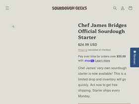 87%Chef James has been using this starter for years and is excited to share with bakers like you! Larry Levain (yes, he has a name) has never been refrigerated and is fed 2x per day, every day. Famously strong, 100% hydrated, shipped stiff. 🍞 BAKE FASTER WITH STARTER 'SHIPPED STIFF' Why 'shipped stiff'? It slows fermentation activity so that it doesn't develop too much acidity in transit, meaning you'll get a starter that will activate and be ready to bake faster. 🍞 100,000 LOAVES LATERUnlike random starters you'll find online, this one has actually been used successfully and made more bread than you can imagine! 🍞 NEVER REFRIGERATED & FED DAILYSince Larry Levain is used so regularly, he's never been refrigerated and is ready to bake with, fast. Your starter has been well-fed for years and will produce great bread for you. 🍞 42 GRAMS OF GOODNESSWhere you'll find others give you 5-15g of starter - you're getting a full 42g for the best efficacy! Your starter will come ready to feed and bake, with easy to follow instructions. WE SHIP LARRY ON MONDAYS ONLY EVERY WEEK. This is to ensure freshness and timely delivery in the summer heat as it is live, active starter. As always, if you run into any issues we are ready to help: team@sourdoughgeeks.com