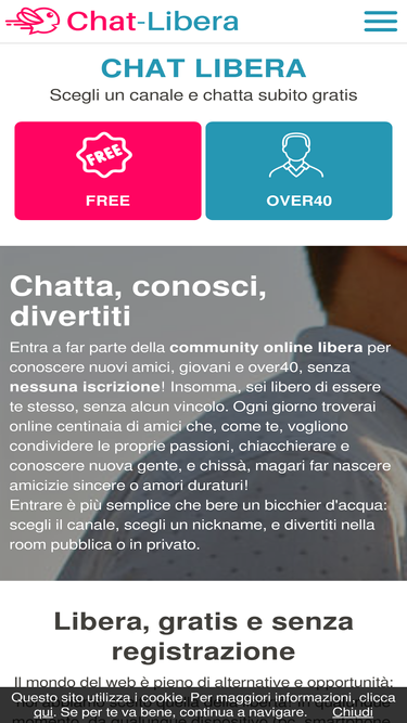 92%free chat italia, la community italiana senza registrazione. chatta adesso con adulti over 40, ragazzi e ragazze nei canali italia.