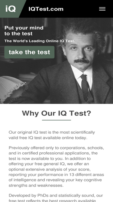 100%this free, certified iq test gives you a real iq score in just minutes. iqtest.com offers the most scientifically valid & reliable iq test online.