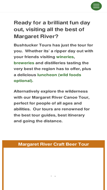 100%Don't settle for imitations, Bushtucker Tours offer the original and best winery, brewery and river tour. Departing 10am every day for brilliant fun memories.