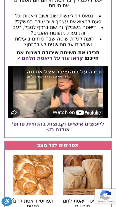 76%פרופ' אולגה רז, דיאטנית קלינית פורצת דרך ומפתחת שיטת דיאטת הלחם. מומחית בקבוצות רזיה, דיאטה ותזונה נכונה. אלפי מטופלים מרוצים יספרו לכם איך שיפרו את חייהם.