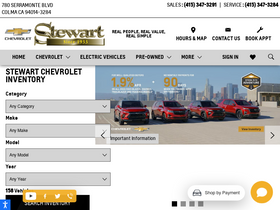 91%stewart chevrolet is your top colma chevy dealer with a great selection of cars, trucks, and suvs. visit our stress-free dealership with state-of-the-art service department and parts center.