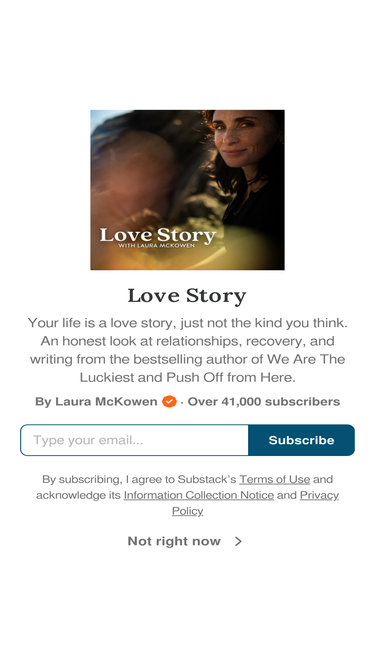 72%your life is a love story, it’s just not the kind you think. an honest look at relationships, recovery, and writing (with a heavy dose of taylor swift). click to read love story, by laura mckowen, a substack publication with tens of thousands of readers.