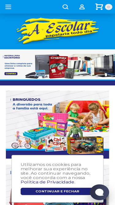 83%fundada em 1953 a papelaria a escolar destaca-se pela qualidade e grande variedade de produtos que oferece a seus clientes, com tradição e confiança conquistada nestes 70 anos no mercado. a empresa atende clientes no atacado e no varejo com versatilidade em seu mix de produtos, pois além de trabalhar com toda linha de papelaria, vende também brinquedos, presentes, informática, produtos descartáveis, produtos para festas, produtos para limpeza, entre outros. além disso, a empresa possui divisões específicas para vendas ao governo, telemarketing , vendas corporativas e empresariais, contando com parceiros na distribuição de produtos de primeira linha, como: tilibra, bic, faber castell, pilot, 3m, chamex, vulcan, estrela, mattel, hasbro, buba, multibrink, dermiwil, chenson, sestini, microsoft, samsung, hp, maxprint, lexmark, entre diversos outros. entre em contato e conheça nossos produtos, teremos prazer em atendê-lo.
